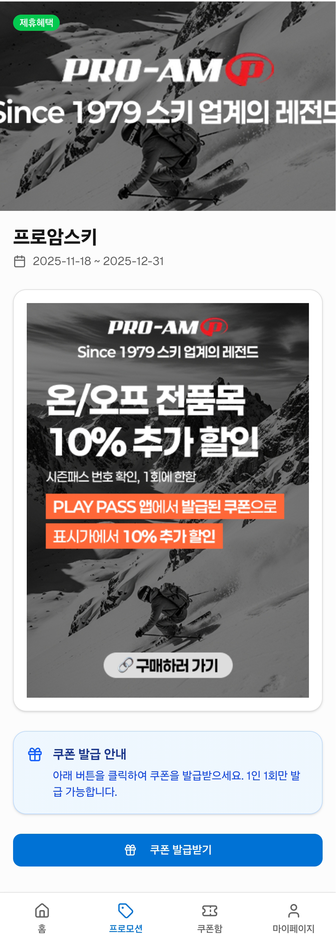 25/26 스키 시즌에 X5+ 과 협업하여 시즌패스 구매자 여러분께 전품목 10% 추가 할인 행사를 기획하였습니다.