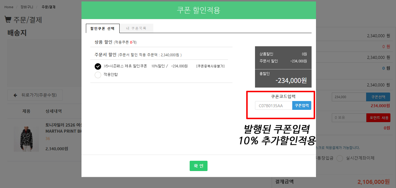 매장에서는 쿠폰을 제시해 주시면 포스 시스템에 입력 총액에서 10% 할인된 최종 금액으로 결제하실수 있습니다.